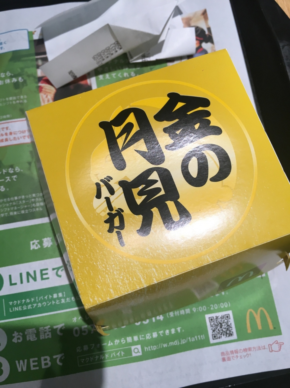 毎年月見バーガーを食べている人がいるほどファンが多いハンバーガー。私も食べてみようと入りました。普通の月見バーガーもありましたが、せっかくなので金の月見バーガーをチョイス。普通に美味しかったです。チーズがいい味出してました。