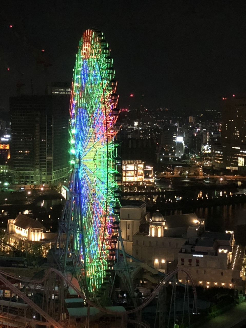 横浜みなとみらい地区にある大観覧車で中心部に時計が着いています。夜には様々なイルミネーションで飾られ、見飽きることがないくらい変化し続けます。