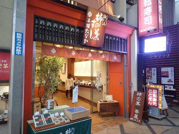 近鉄奈良駅前の東向商店街にある柿の葉すしの老舗店です。