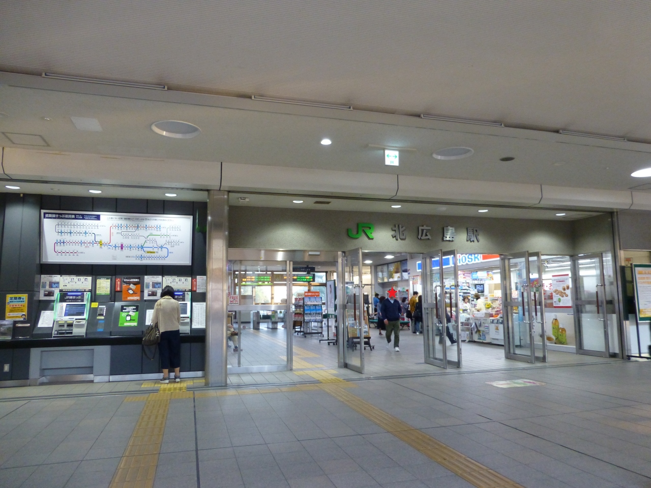 北広島は札幌市と千歳市の中間にあります。札幌市から通勤圏内です。しかし、別の市ということもあり、いろいろなイベントなどは全く別に行われいます。また、最近は北海道日本ハムファイターズのボールパークが設けられることでも注目されています。その中心的な交通機関がJRであり、駅は北広島駅です。2階部分が非常に広いコンコースとなって駅の両サイドの市部をつなく機能も持っているように思われます。また、このコンコースはとても大きなアーケードで覆われていて、とても綺麗です。