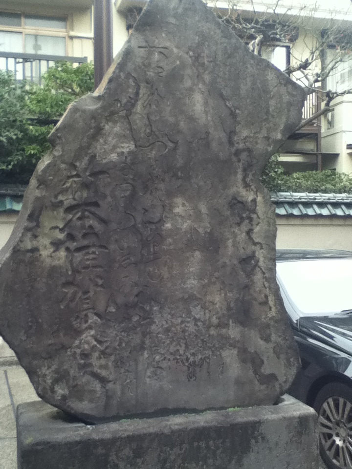竹本津賀太夫の碑は浅草神社裏の駐車場にある。石碑は文政10年(1827)に建立されたものであるが、年月の経過とともに風化が進み現在の形状は菱形を少し崩したようになっている。碑文は「大江戸のつよきひいきの力にぞ、かかる千曳のいしぶみはたつ」と刻まれていたようですが、草書体かそれに近い書体で書かれている上に表面が風化し今ではほとんど読めず名前だかが読める程度である。お勧めの点は、竹本津賀太夫は浄瑠璃の一種である義太夫節の太夫で、初代は天保年間に活躍しその後6代目は明治から昭和時代に活躍したこと、この石碑の台石には百数十名の門下の名が列記されており、建立当時、義太夫節が大変人気があったことや竹本津賀太夫が門弟や市民から大変慕われていたかがが伺えること、このように竹本津賀太夫は浄瑠璃の世界で大変活躍した人物であり特に浄瑠璃や義太夫節、当時の文化に関心のある人にとっては訪問する価値があることである。