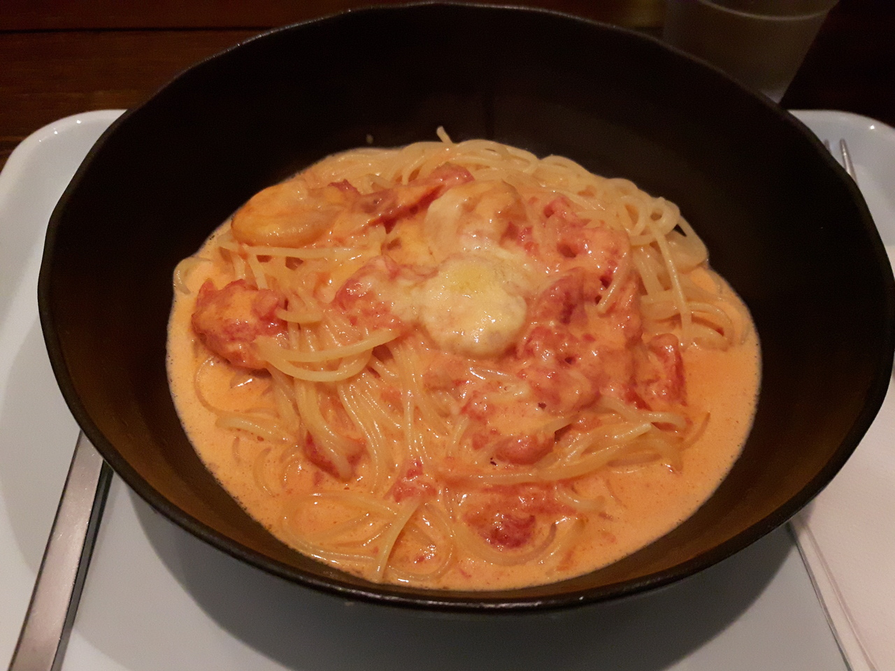 神保町近辺を歩いていて、手打ちパスタの看板にひかれて入りました。並盛りは590円で、大盛りはプラス100円。えびのトマトクリームベースやペペロンチーノなど、熱々のパスタがこのお値段とは良心的です。立ち食いそばの気軽さなので、一人の急ぎランチに。