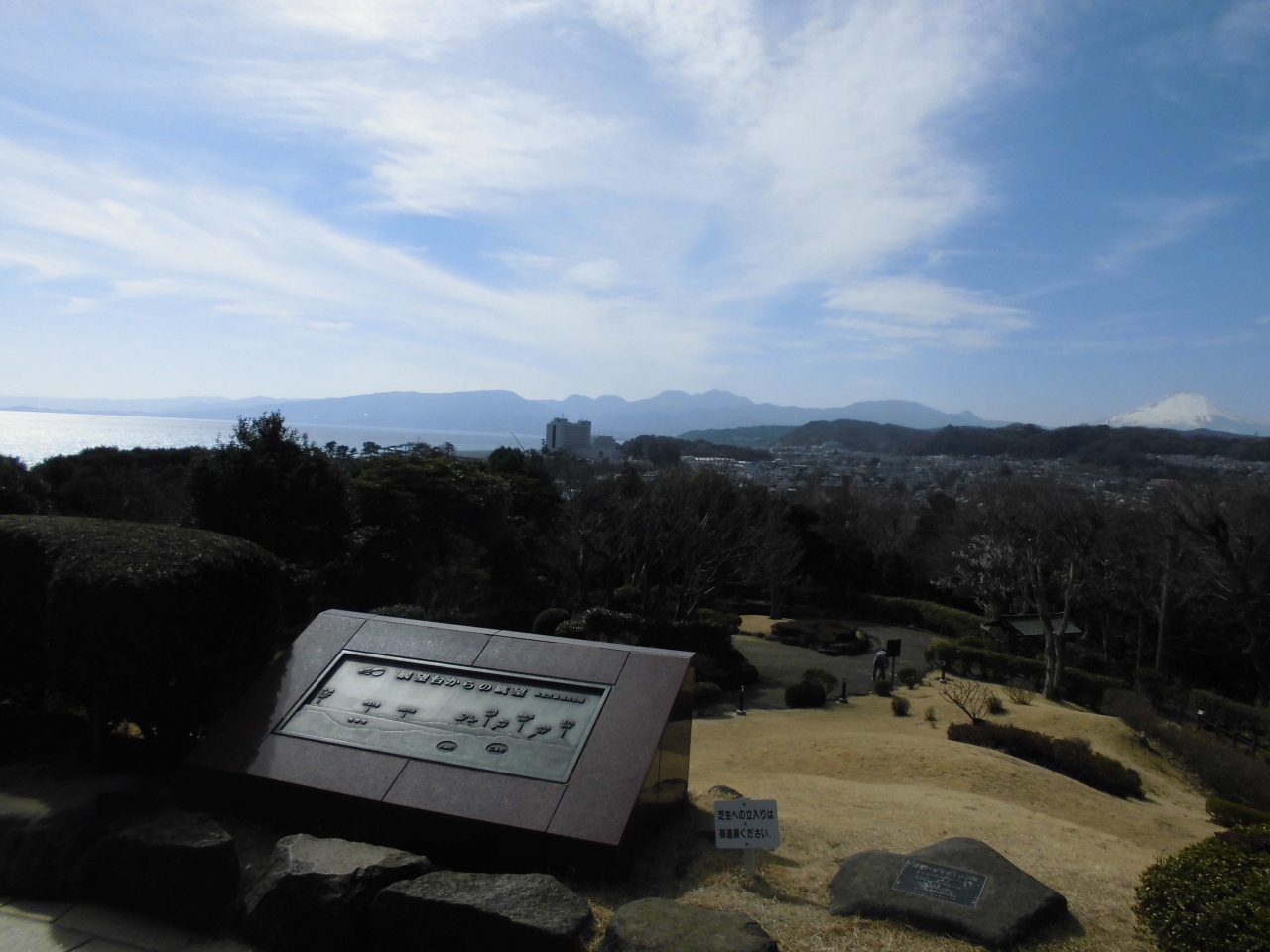 国道1号線沿いにあります。駐車場からだと展望台に真っ先に行けるので太平洋の眺め早く見ることができます。当日は太平洋のみならず富士山も見ることができました。手軽に上ることができるのがこの公園の強みだと思うので行ってみる価値は大いにあります。