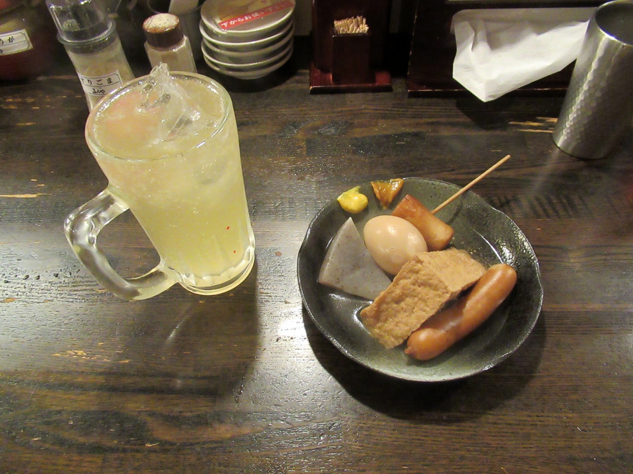 有名なお店とは知らず、ただ大分駅前という立地と、400円の晩酌セットにつられての入店です。店内はラーメン店というよりも民芸風居酒屋っぽい雰囲気、居抜き物件かな?女性スタッフの接客も良かったです。晩酌セットでいただいたのは、かぼす風味の大分ハイボール(美味しかった)と、おでんも出汁がきいていて美味しく、”ちびた”も楽しめました。そして元ラーメン(580円)、しっかりした豚骨スープで、今風ではない昔ながらといったラーメン、オジサン世代には安心感のある味でした。