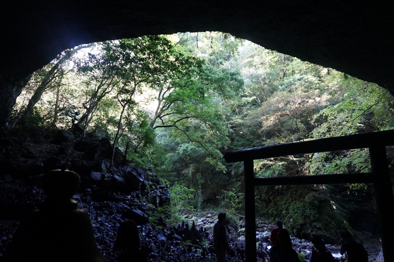 天照大神が岩戸に隠れたさい、天地暗黒となり八百万の神がこの河原に集まり神議されたと伝えられる大洞窟です。高千穂の神秘的なパワースポットです。またこの河原で願いを込めながら石を積むと、その願いが叶うと言われているようです。