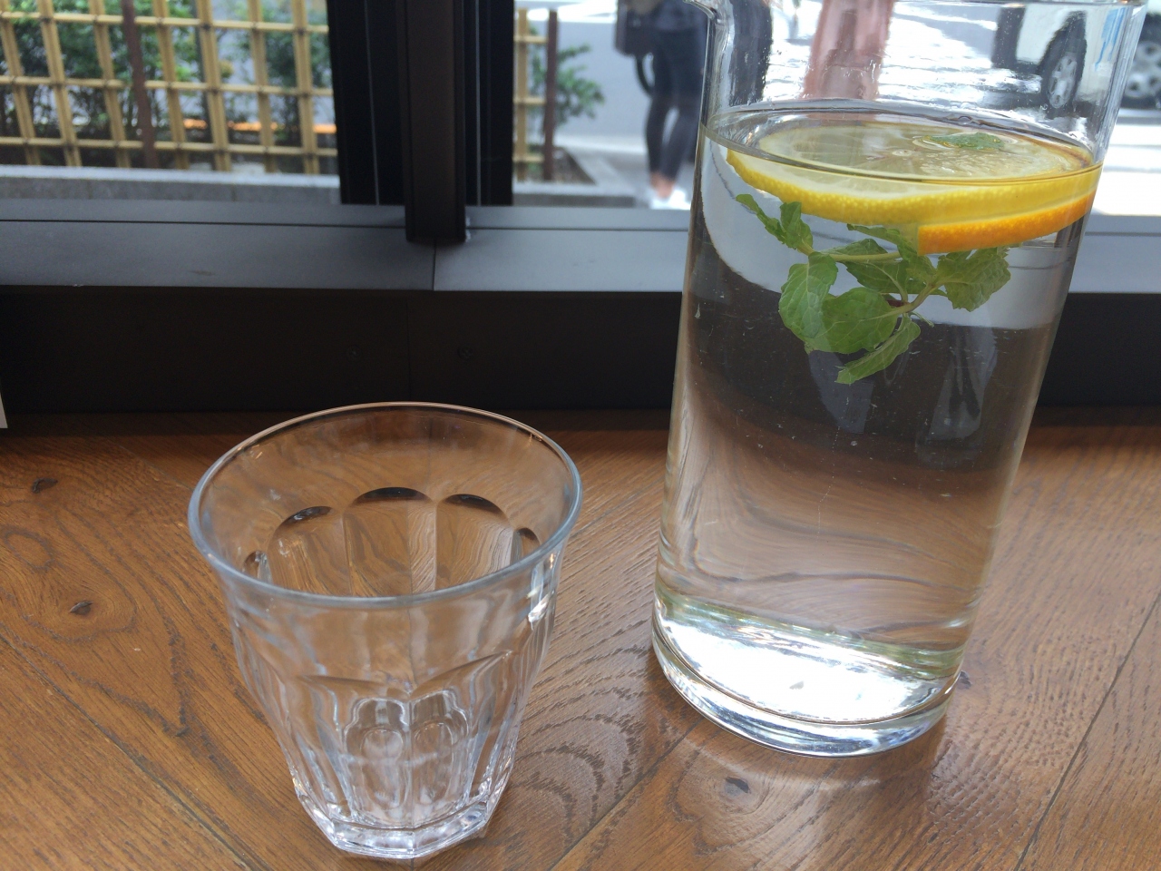 こちらの水(無料)は普通の水、炭酸水、デトックスウオーターの
