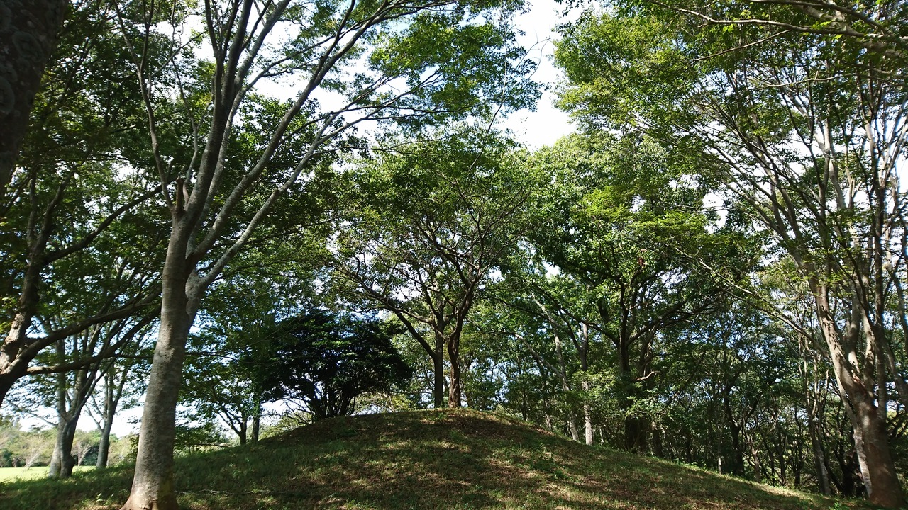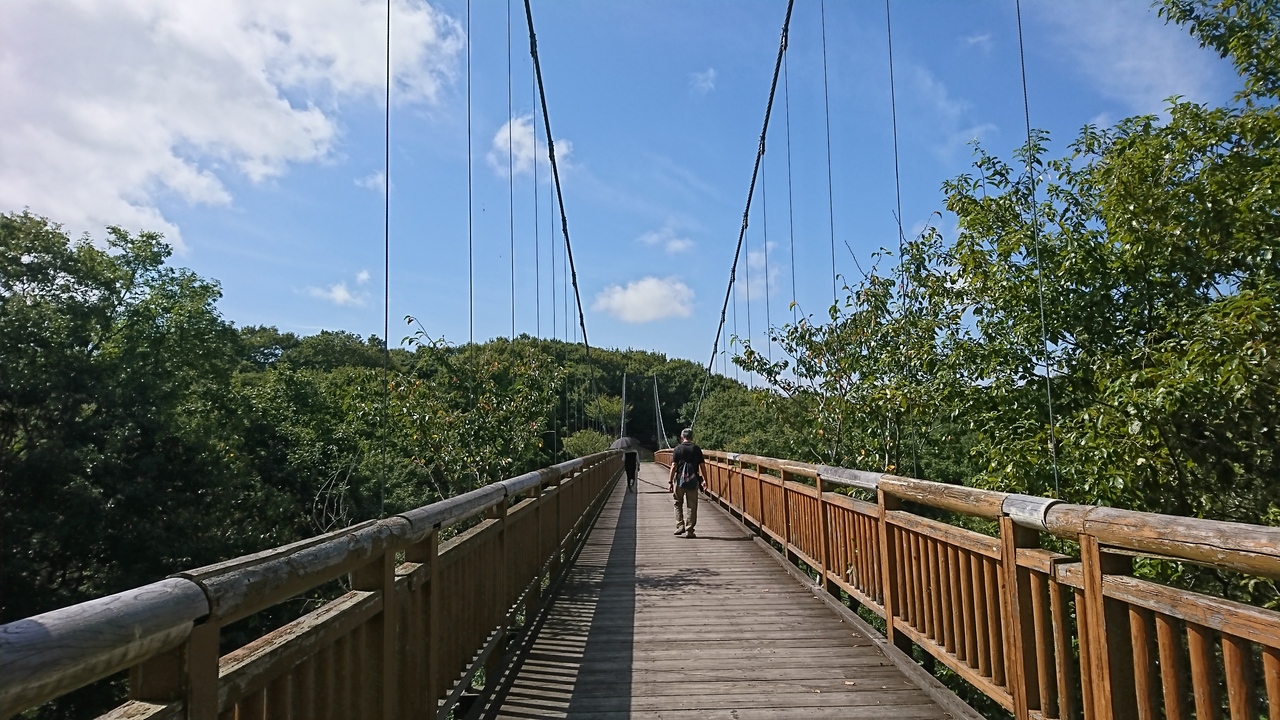 雑木林、池など自然がそのまま残り、大生古墳群もあります。園内にある池にはつり橋がかかっています。