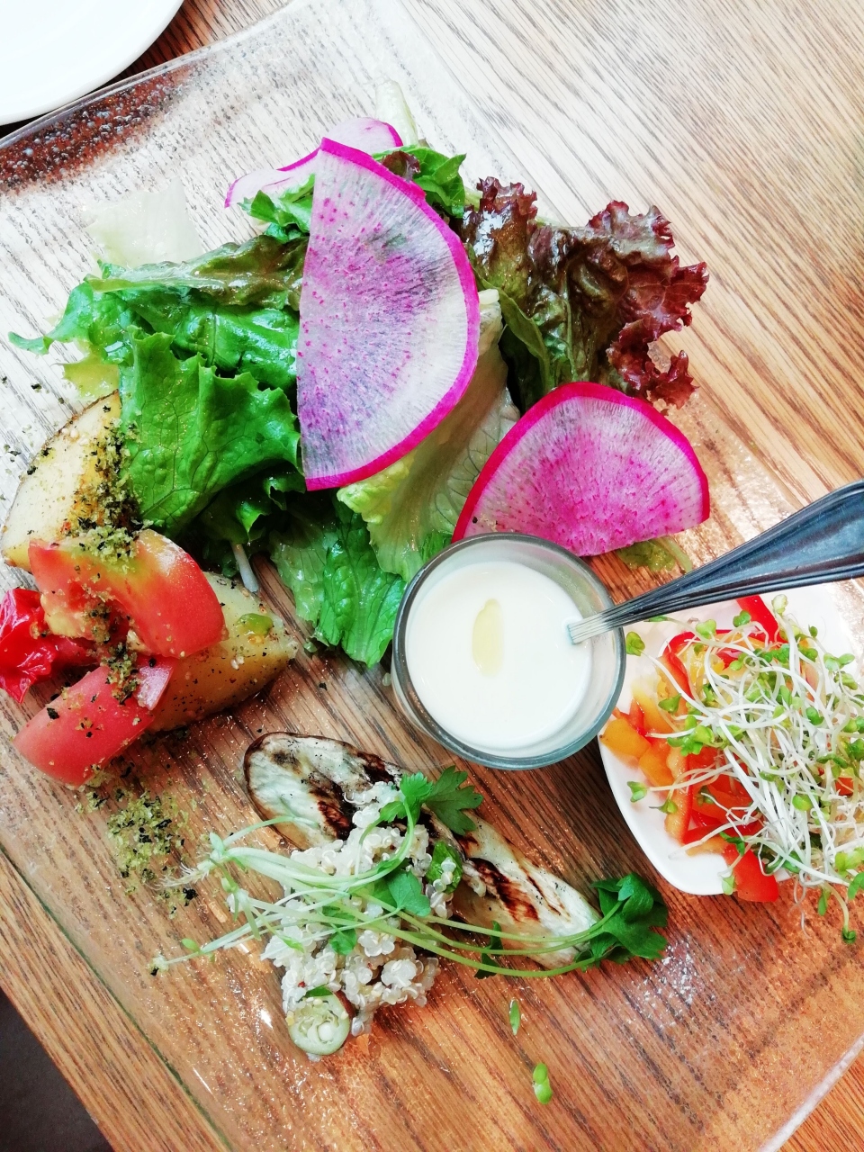 ランチタイムにおじゃましました。3階へ上がる店の入り口が少しわかりずらいので要注意です。店内は清潔でとっても良い感じ、サービスの方も優しくて感じが良く居心地が良い店です。料理は野菜がふんだんに使ってあり、どのお皿も大満足。目で見ても楽しめます。