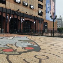 茶色いビルで訪れたときは横浜ベイスターズの選手の大きな垂れ幕がビルにありました。