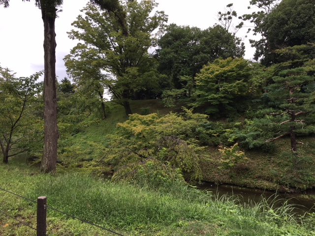 真田神社に参詣し真田井戸を見た後に、上田城跡の本丸跡の周りをぐるっと1周しました。お堀の向こうの本丸跡は土塁のように土が盛り上がっていて、隅櫓が建っていたそうです。4隅のうち北東の部分だけ、隅の部分を切り取ってありました。ここは鬼門らしく、鬼門除けとしてわざわざこの形にしたのだそうです。