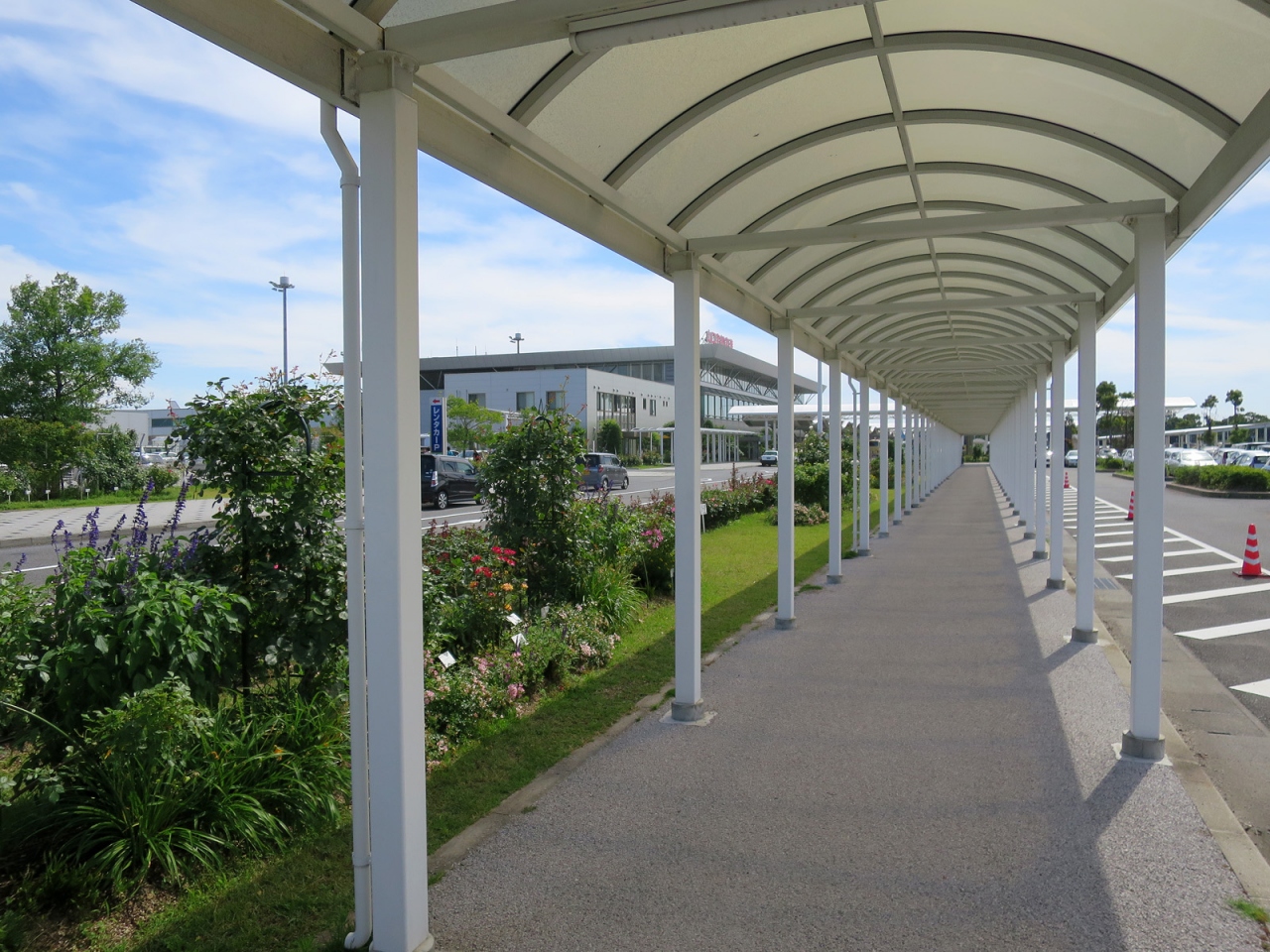 花と緑、芸術作品のある綺麗な空港