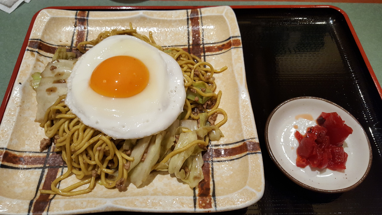 小ぶりな横手焼きそばが現れました。ちゃんと福神漬けも付いています。横手で焼きそばは何度も食べていますが、この店のは特に美味しいということもなく。普通です。手軽にいろいろな秋田料理が食べられるのはいいんじゃないでしょうか。