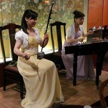 店内では二胡や1920年ころ造られた2代目周ピアノの生演奏があり、優雅な雰囲気の中で、美味しい料理が楽しめます。