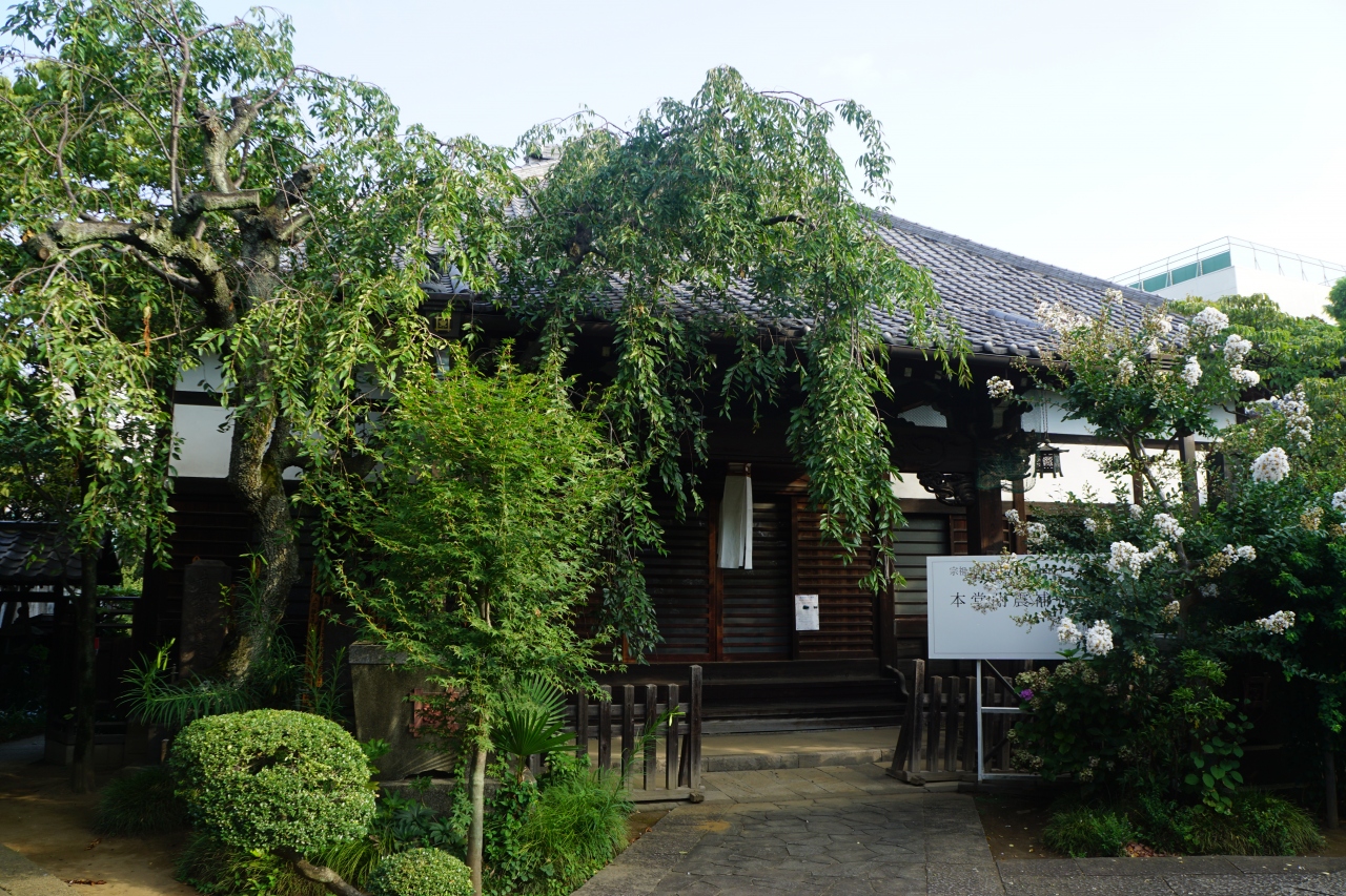 聖坂を上がって、三田台公園の周辺にはいくつかのお寺があって、薬王寺もその一つ。元和7年(1621年)に創建された日蓮宗の寺です。通りからは下の境内に降りて行くような構え。それがちょっと面白い。