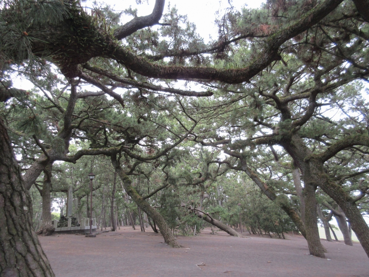 訪れた日はあいにくの曇り空で、松原越しの富士山は見えませんでした。ですが、三保松原の一本一本の松の木がすごいですね。太い古木、それに個性豊かな枝曲がり具合で並んでる。松原の小道を歩いて行くと思わず足を止めて見入ったりして楽しくなります。一般的には松原を俯瞰するのが日とされていますが、こうしてここの木々を見て楽しむのも良いですよ。