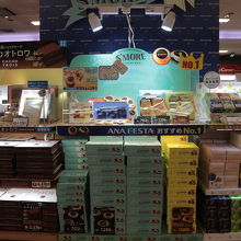 モノレール、京急で空港に着いた人は利用しやすいB1F。バスや自家用車の人は1Fに同じANA FESTAがあるのでそちらの方が多少近いと思います。店内はマシュマロやチョコなどお土産品が多く置いてありました。数は少ないですが空弁もいくつかおいてあったので購入することができます。