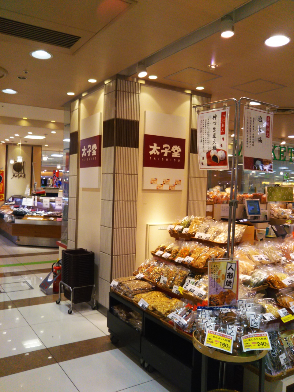 神奈川県川崎市JR川崎駅直結のアトレ川崎の地下1Fにあるショップです。おかしの専門店です。昔ながらのおかしやおせんべい、おかき、豆がしなどが大袋に入って販売しています。おしょうゆ濃いめのおせんべいがおいしいです。季節限定の豆だいふくはあんこが上品な甘さでおいしかったです