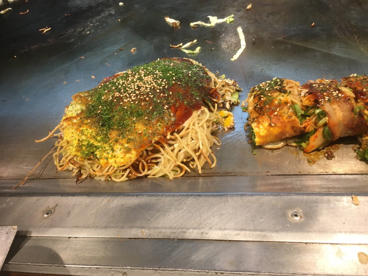ただ地元の人は、広島焼きよりも、レンコンバター焼き、豆腐焼き、豚キムチ炒めと行った鉄板焼きメニューをつまみにしている人が多く、広島焼きは締めに食べてる人が多かったです。