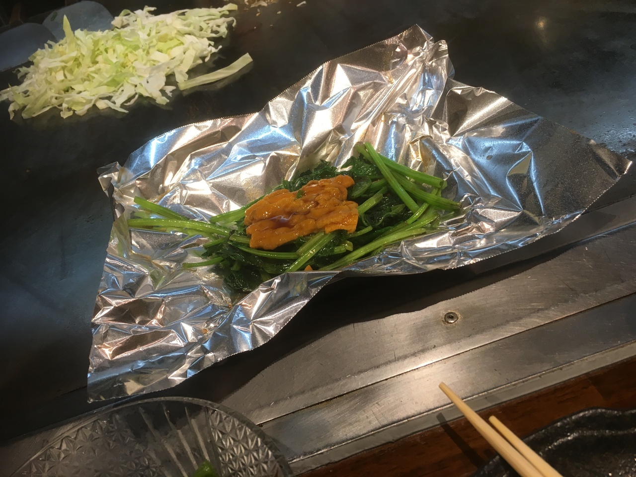 ウニホーレンという、ホーレン草のバター炒めにウニを乗せたやつなどを食べました。