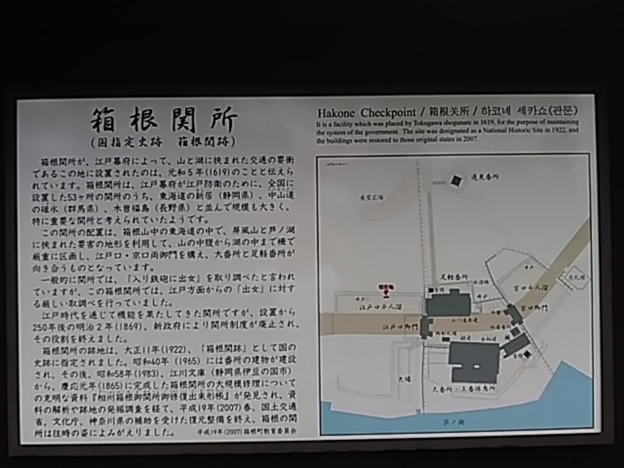 箱根関所は平成19年に復元が終わりました。箱根関所は江戸時代の建物の他に調度品や武器・武具なども完全復元してあります。関所の順路に従って展示物を見たりするには500円かかります。その券で箱根関所資料館も見ることができます。近くに神奈川県立恩賜箱根公園駐車場があり、一時間310円で止めることができます。