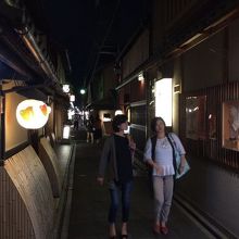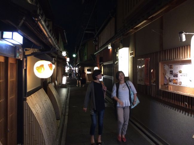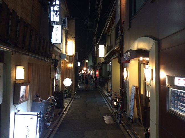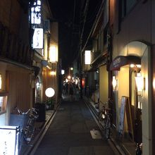 鴨川沿いの風情ある細く狭い小路の両脇には多くのお店が軒を並べる。