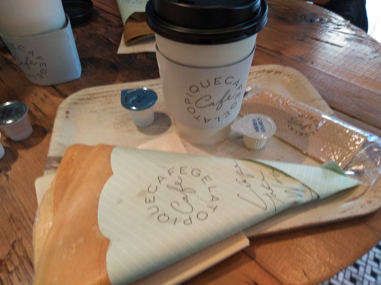 池袋西口のルミネ池袋1階の外に面したオープンカフェ。天候の良い日は最高な気分で使えます。クレープカフェです。お勧めは、エシレ産バタークレープ。生地の端がパリパリして美味しいです。クレープを頼めばコーヒー、紅茶が200円、それ以外のドリンクは300円になりますから、クレープとコーヒーを頼むとお得。気持ちよい席なので、つい長居しておしゃべりがはずみました。