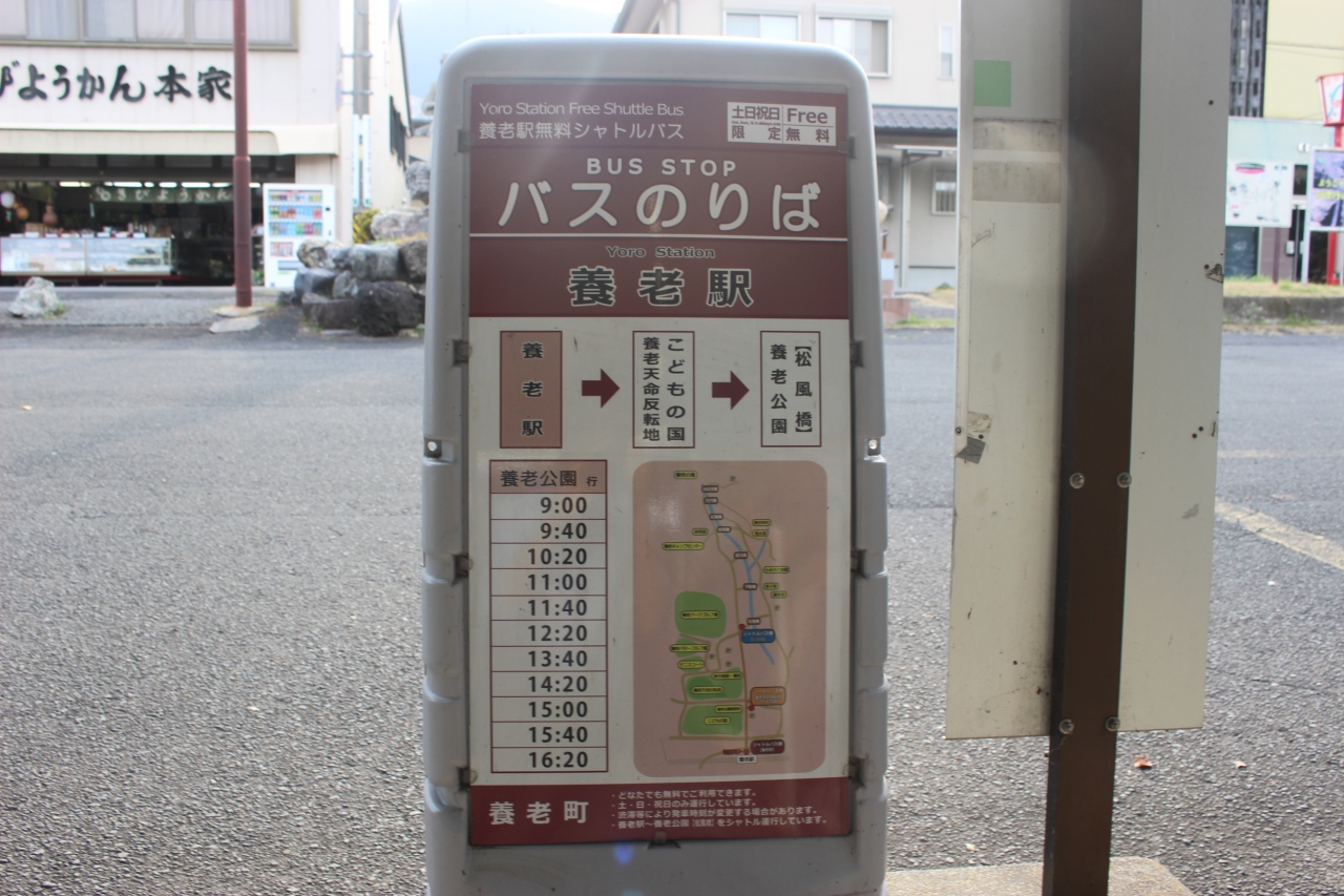 土日祝日は養老駅から無料のマイクロバスが養老の滝方面に出ており、バスの終点から30分ほど坂道を登ったところが養老の滝です。