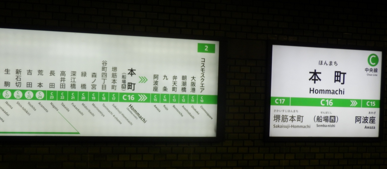 本町は、御堂筋線、四つ橋線、中央線が集まっている為で慣れない場合予め地図で下調べが必要です先日この駅の上にある南御堂と難波神社へ行くのにこの付近は慣れているつもりでしたが一部工事をしていた為出口を間違ってしまいました