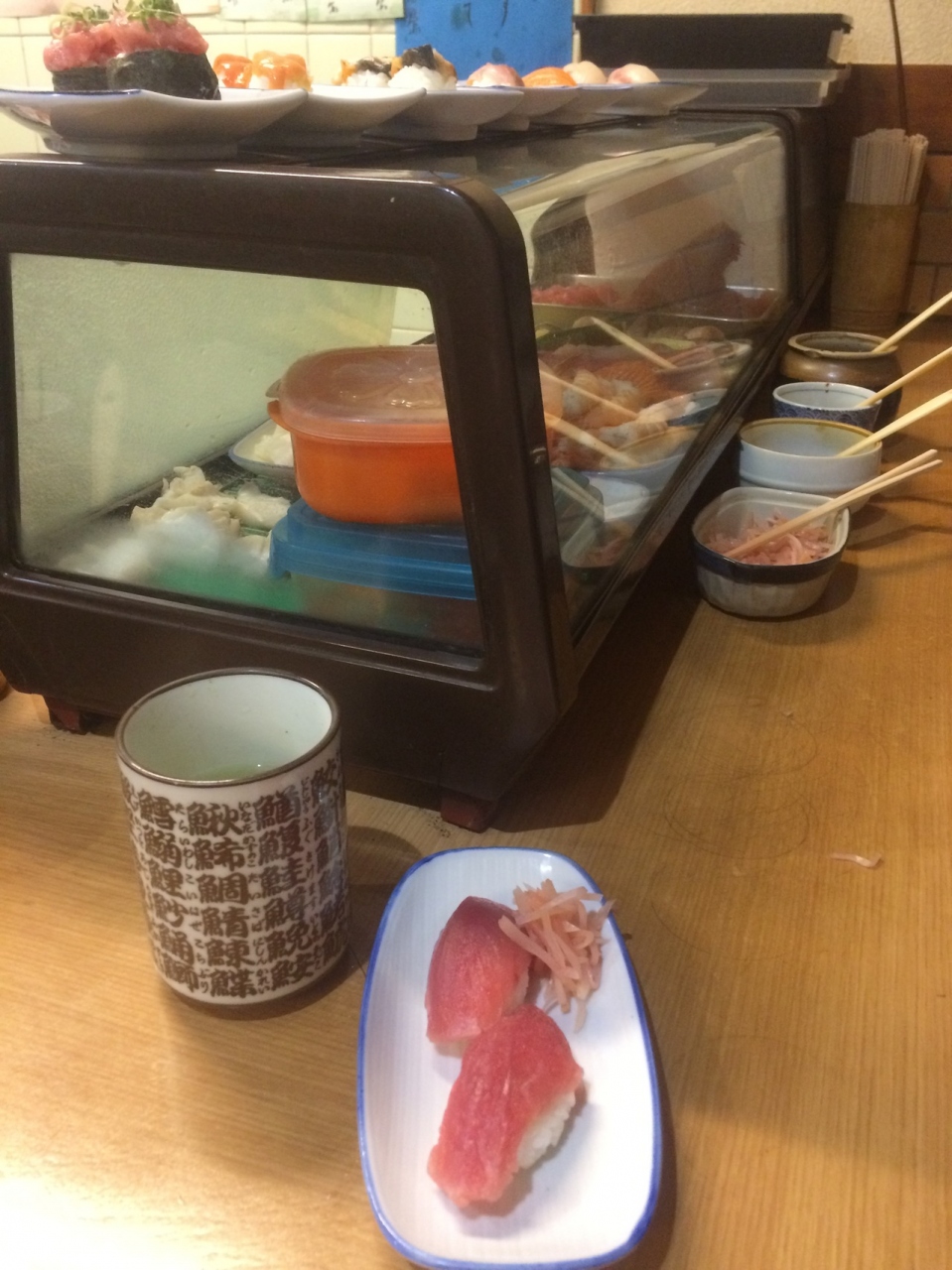 寿司がカウンターに置いてある