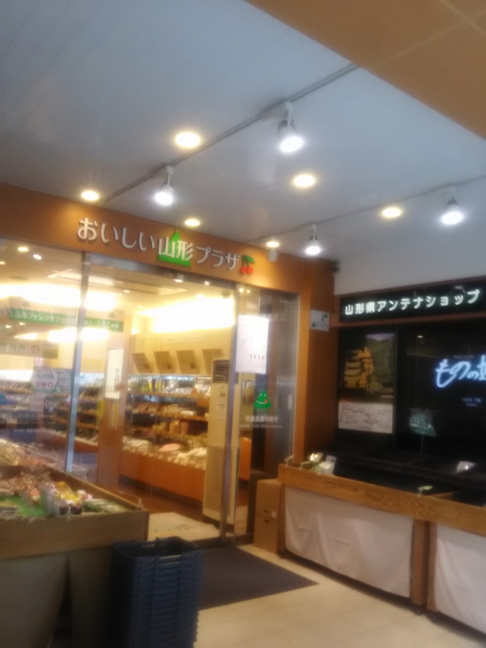 場所としては西銀座通りからマロニエゲートの間をくぐり抜けて昭和通りの方に向かう途中の左手皮にこちらの山形プラザのお店がありますが、入り口までたどり着くと店の外に野菜がたくさん置いてあるのですぐに分かると思います 色々なさんちの野菜などとか調味料やお酒などがたくさん置いてある。