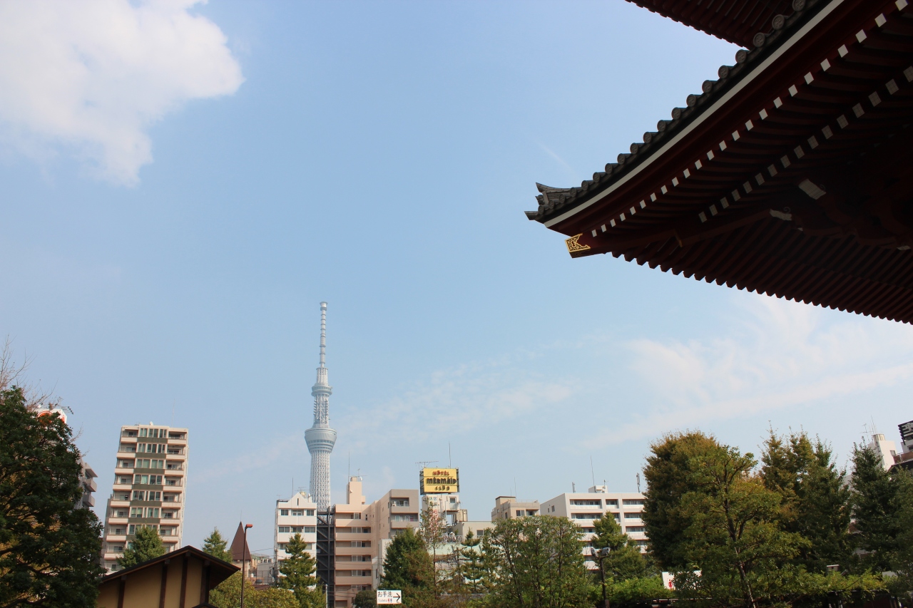 長い時の流れを感じさせるスカイツリーと浅草寺