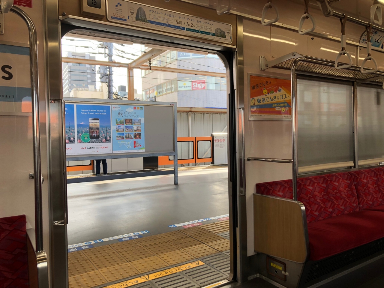 今回は大井町駅から東急線を利用しました。二子玉川や自由が丘にアクセスする際に利用します。8両編成で車内は広々。4人掛けの席もありますが、そちらは優先席なので利用に注意。大井町からの電車は先頭車両が比較的、空いていました。次の下神明駅から見える新幹線は子供にも人気な場所でしょう。