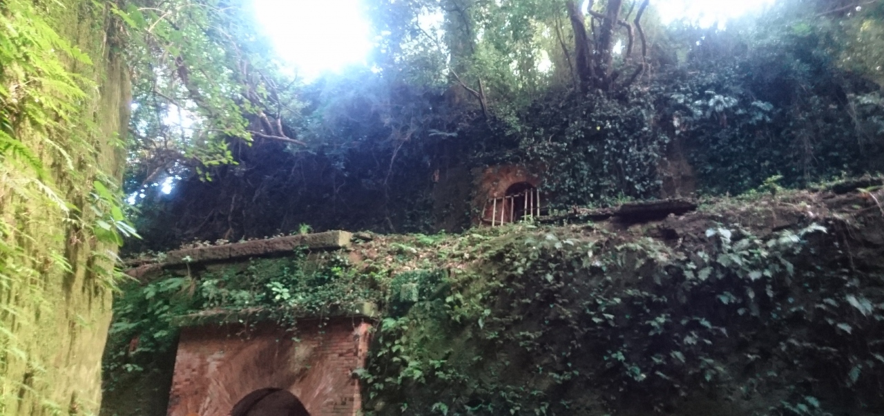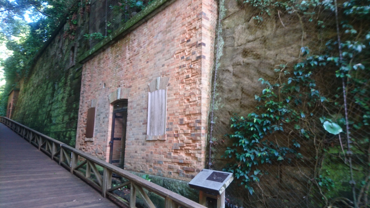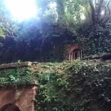 レンガ造りのトンネルの左手には弾薬庫があるが中には入れない。