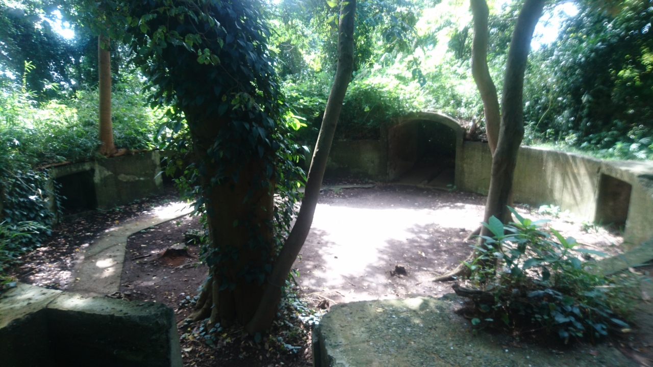4年ぶりに猿島を訪れた。小さな島なので要塞跡巡りはゆっくり歩いても1時間程度。日蓮洞窟へは立入禁止の為、約100段の階段を降りて行く人は少なかった。また展望台も立入禁止(4年前は1階部分には入れた)。砲台跡は何ヵ所かあるが、⑦近くが一番大きい。