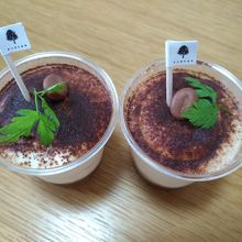 お持ち帰りでティラミスを頂きました。とても小さなカップなので、食後でもペロリと食べれます。味は甘すぎずとても美味しかったです。スポンジ部分はしっとりと、クリームの部分はふわふわと良い食感でした。以前食べたチーズケーキに負けず劣らず、美味しかったので、次は他のに挑戦したいと思います。