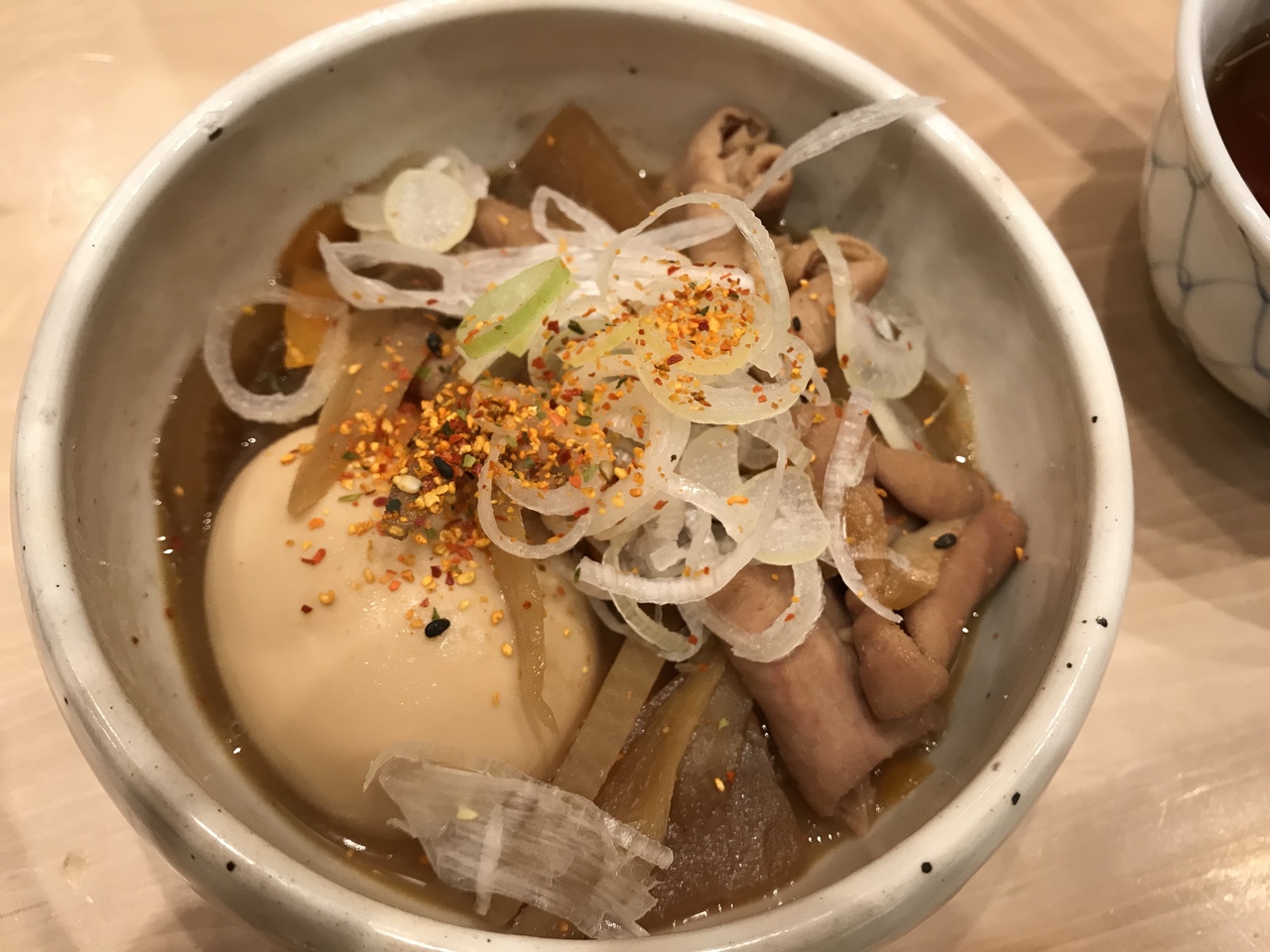 モツ煮込みの玉子が半熟で美味しいです。煮込みスープは、あまりコクはありません。蕎麦は北海道の蕎麦の実を店内でひいて、うちたて、茹でたてをうたっていますが、全くの期待はずれでした。蕎麦湯もがっかりするようなものでした。