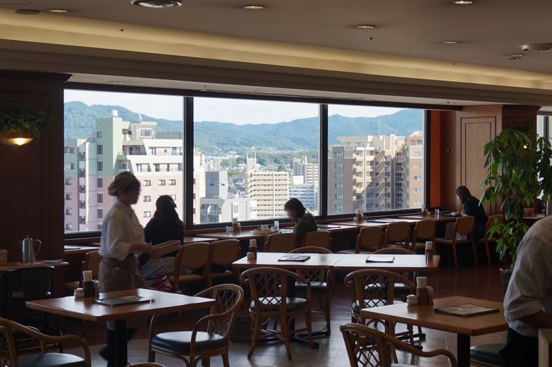 駅前デパートの10階、耳納連山を望む眺望もバツグンのレストランです。昔なら「大食堂」と呼び、お子様ランチや洋食中心のメニューを展開してたんじゃないかなという立地ですが、さすがに現代では様変わり。地域産の野菜を中心にした、地産地消のレストランになっています。野菜が中心のランチ(税込み1,000円)は、肉食中心の私にとって、野菜分が染みるような味わいでした。