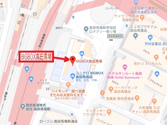 BIGBOXは、西武鉄道が所有している複合商業ビルで、高田馬場駅に連接しています。