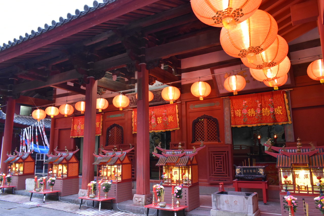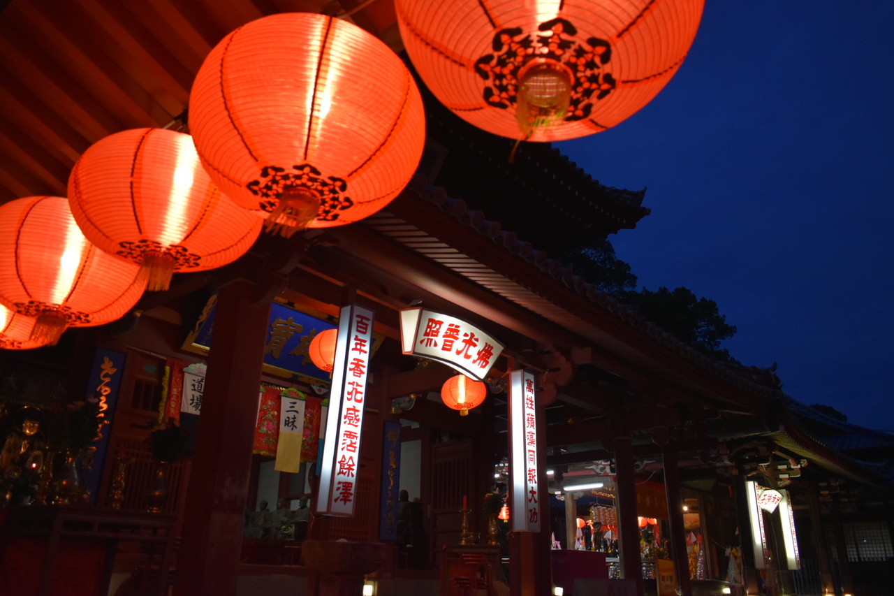 中国盆の時期中に行きました。中国盆だったからか普段入場料が必要なのにその日は料金所が閉鎖してました。夕方に行きましたがランタンが入り口からずっと続いており、階段を登ると中国盆のための飾り付けがしてありました。メインである最終日ではなかったので人は少なかったです。