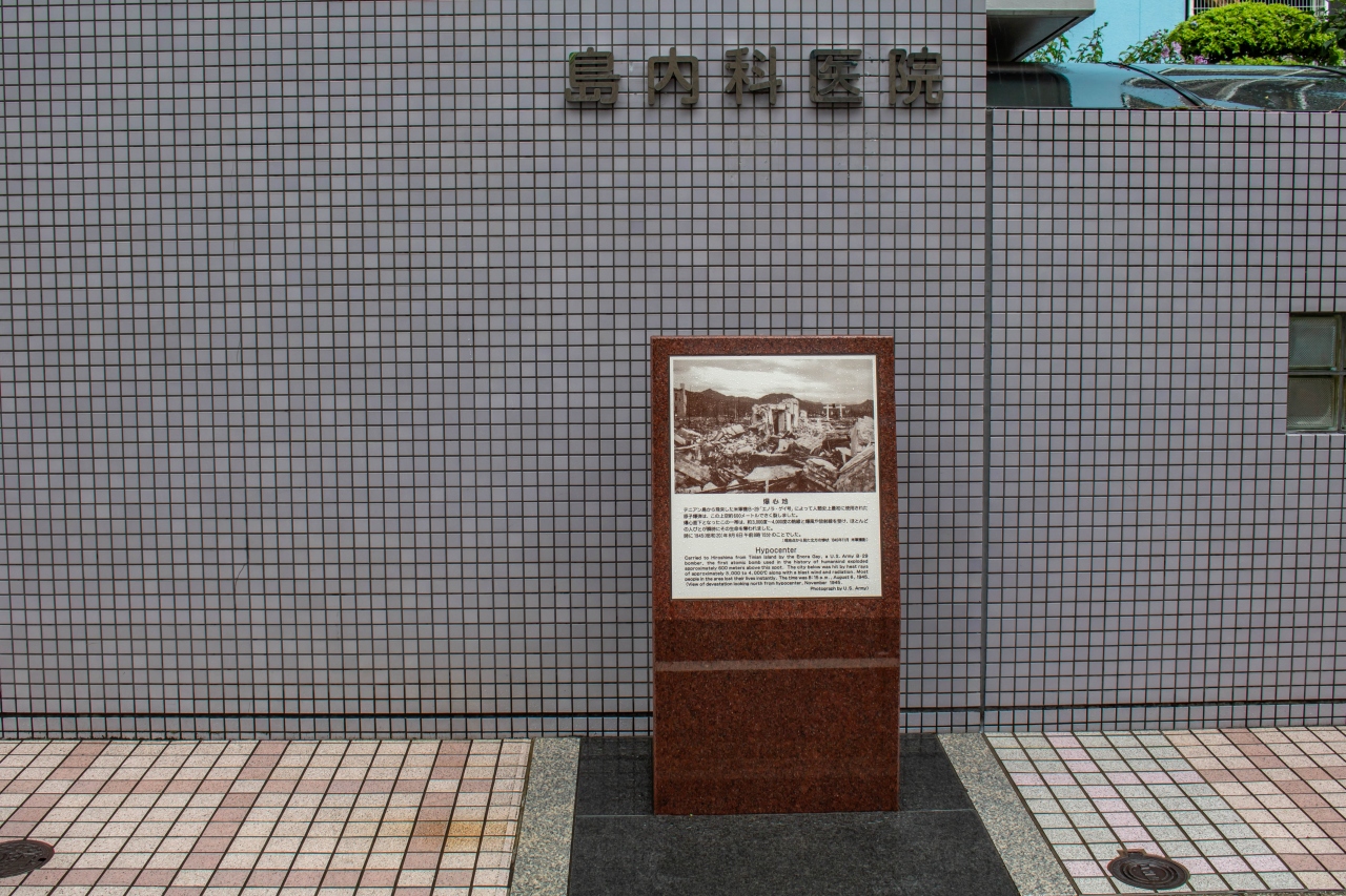 原爆ドームから歩いて2分くらいの場所なので、是非合わせて見学するとよいでしょう。今は病院の前にパネルが建っているだけで、足を止める人もいませんが、ここを起点に地図を眺めてみると改めて距離感がつかめて良いかもしれません。