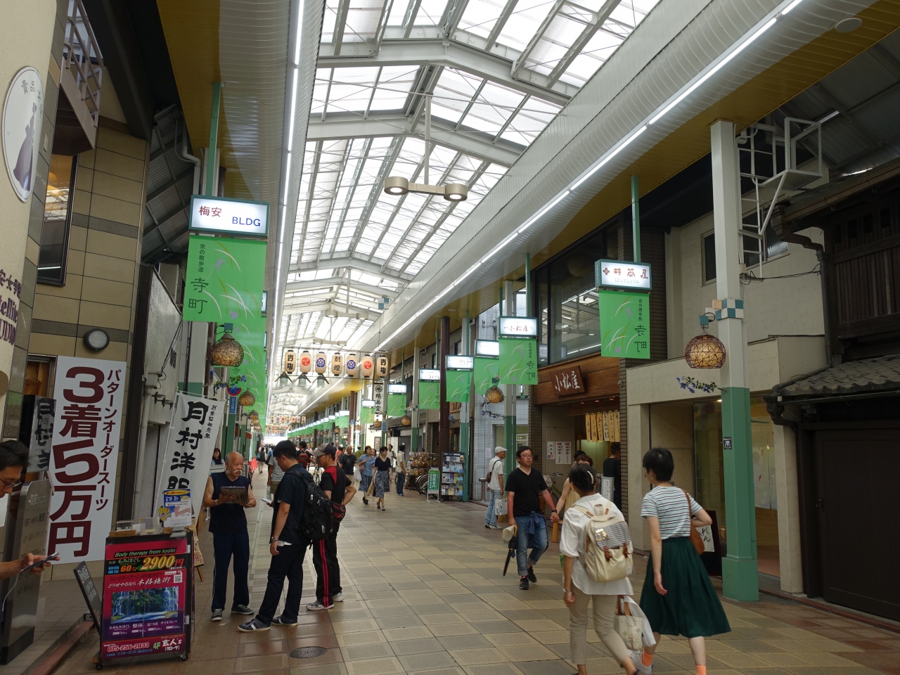 寺町通は京都を南北に貫く通りで、その名の通り通りの左右にはお寺が多いです。御池通より南になるとアーケード商店街となり、どこか地方都市のようなのんびりとした光景が見られます。老舗和菓子店や歴史を感じる古書店などもあり、買い物目当てでなくても楽しめるスポットです。