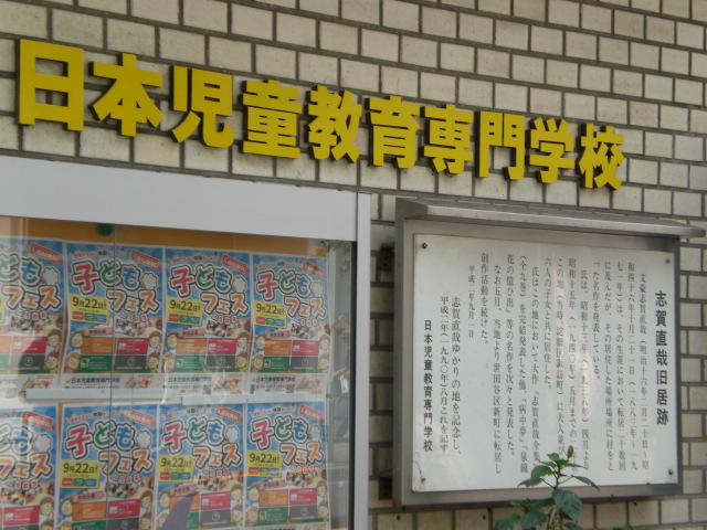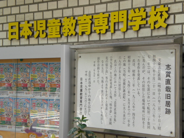 標識の解説文には、志賀直哉の居住した住居が、記されています。