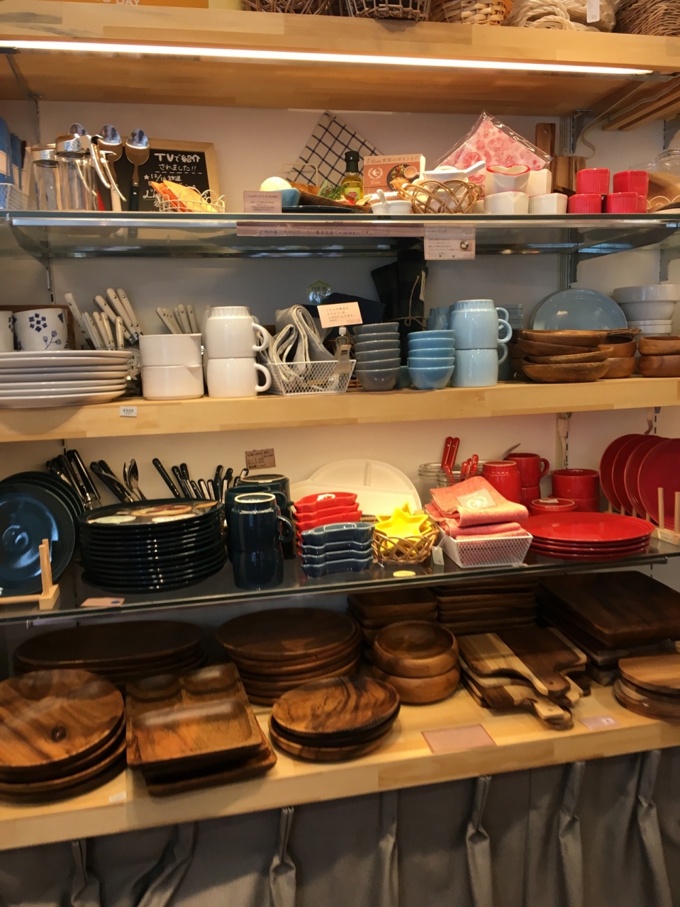 自由が丘のトレンチに入っているナチュラルキッチンに伺いました。こちらのお店は通路が狭いので混んでいる日は見るのが大変ですが、平日だったので割と見やすかったです。食器が欲しかったのでとても素敵なものを安く購入できよかったです。ピクニックで使える折りたたみのテーブルなどもあり何でも揃うなぁと思いました。