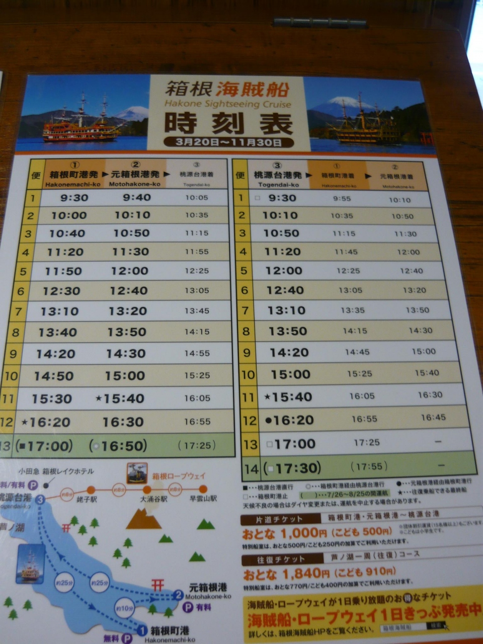 大手旅行会社のツアーで利用しました。箱海町港から桃源台港まで海賊船に乗りました。