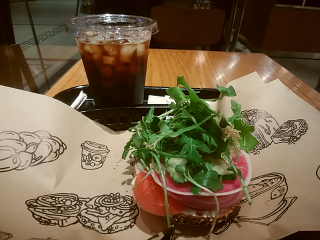 サンフランシスコは、エブリシングベーグルにたっぷり野菜がのったベジタリアンメニュー。もりっと盛られた野菜が食べにくい。野菜メインだけどクリチもぬられているので物足りなさはなかったです。