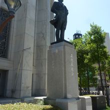 淀屋橋駅を下車し、北浜方面に川沿いを進むと北浜一丁目の三叉路の角に一際目立つ像が建っている。大阪証券取引所ビルの入り口前で見下ろしている。彼は大阪財界の建て直しの立役者として大きく貢献し、今でも私達の歴史上のヒーローとして心の中に残っている。