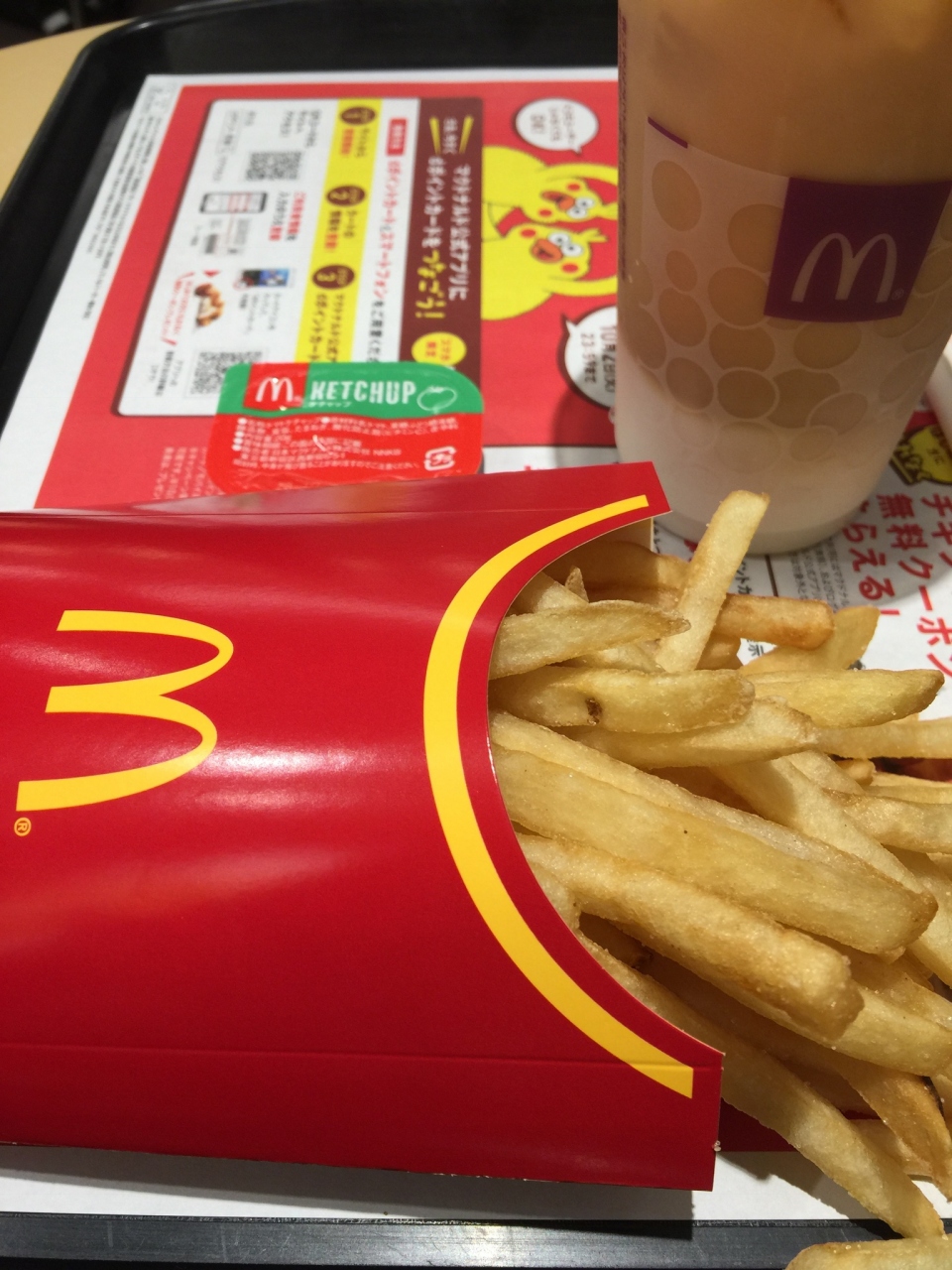 最近アプリのクーポンでポテトが安く食べられる事が多いのでLポテトをゲット。ケチャップはひとつまで無料でもらえます。本当はコーラをつけたいところこちらもクーポンのカフェラテ。セブンイレブンのカフェラテの方がおいしいけれど190yenでこの量なら納得。安定の味です。