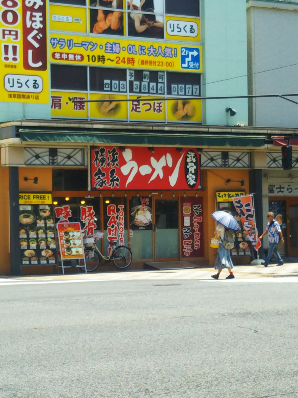 東京の観光スポット、浅草にあるお店です。国際通り沿いにあるラーメン店で、横浜家系ラーメン店です。太麺に濃厚なしょうゆとんこつスープがおいしいです。濃さや脂の量など指定できます。また白米ごはんが無料です。