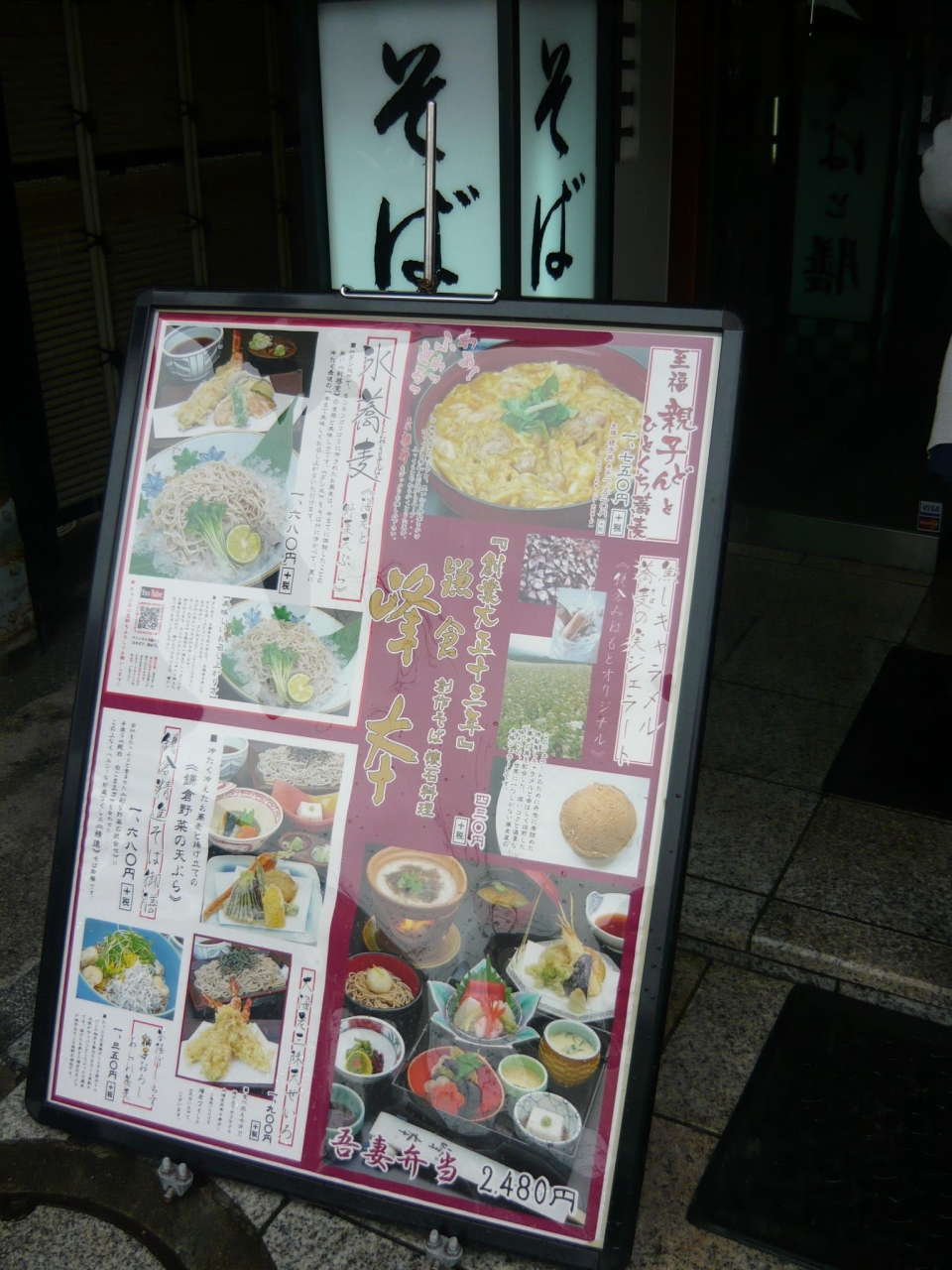 鶴岡八幡宮の三の鳥居の目の前にある蕎麦屋さんです。入口からは想像できないほど店内は広くてゆっくり食事することができました。頂いたのは、海老と野菜のテンプラがついた“氷蕎麦 1680円”。出汁氷の上に盛られ、キンキンに冷やされたボリュームたっぷりのお蕎麦はコシがあって美味しかったです。