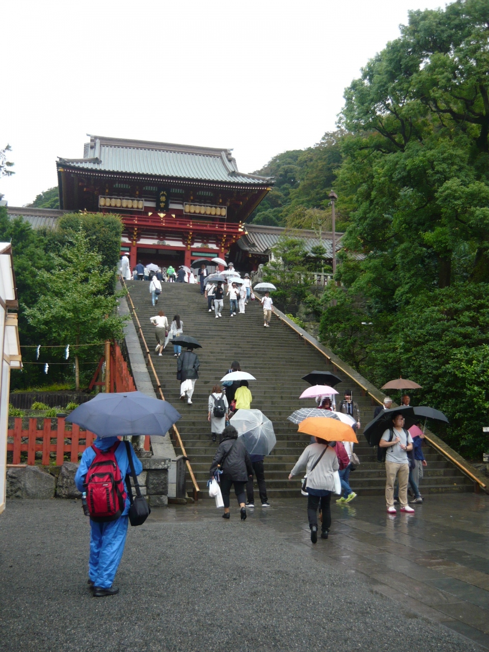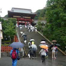 鎌倉初代将軍源頼朝ゆかりの神社らしく、豊かな自然に囲まれた社殿は重厚でといも良い雰囲気。参拝した時は、あいにくのお天気でしたが、沢山の海外からの観光客の方が来ていました。本殿までは60段ほどの急な階段を上っていく必要がありますが、上り詰めて振り返ると海まで一直線の参道が見えてよかったです。